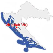 Vir je položen u Virskom moru u sjeverozapadnom dijelu Dalmacije, i dvadeseti je po veličini među hrvatskim otocima, a osmi u Zadarskom arhipelagu. Od centra sjeverno-dalmatinske regije, Zadra, udaljen je 26 km kopnenim, a oko15 NM morskim putom (do pristaništa). Od 1976. godine s kopnom je spojen preko Privlačkog gaza lučkim mostom čime je postao sastavnim dijelom kopna i čime počinje njegova ekspanzija.